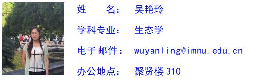 吴艳玲,女,汉族,中共党员,博士,副教授,硕士研究生导师。体育买球官方网站生态学系系主任。主要从事草地生态学、土壤动物生态学领域的研究工作,主持国家自然科学基金项目1项,省部级、校级项目5项,参与国家级项目多项,发表国内核心期刊论文10余篇,出版专著1部。曾获得“优秀党务工作者”、“第十一届青年教师技能大赛”一等奖和“优秀班主任”等称号。承担普通生态学、环境学概论等相关课程的教学和专业实习指导工作。