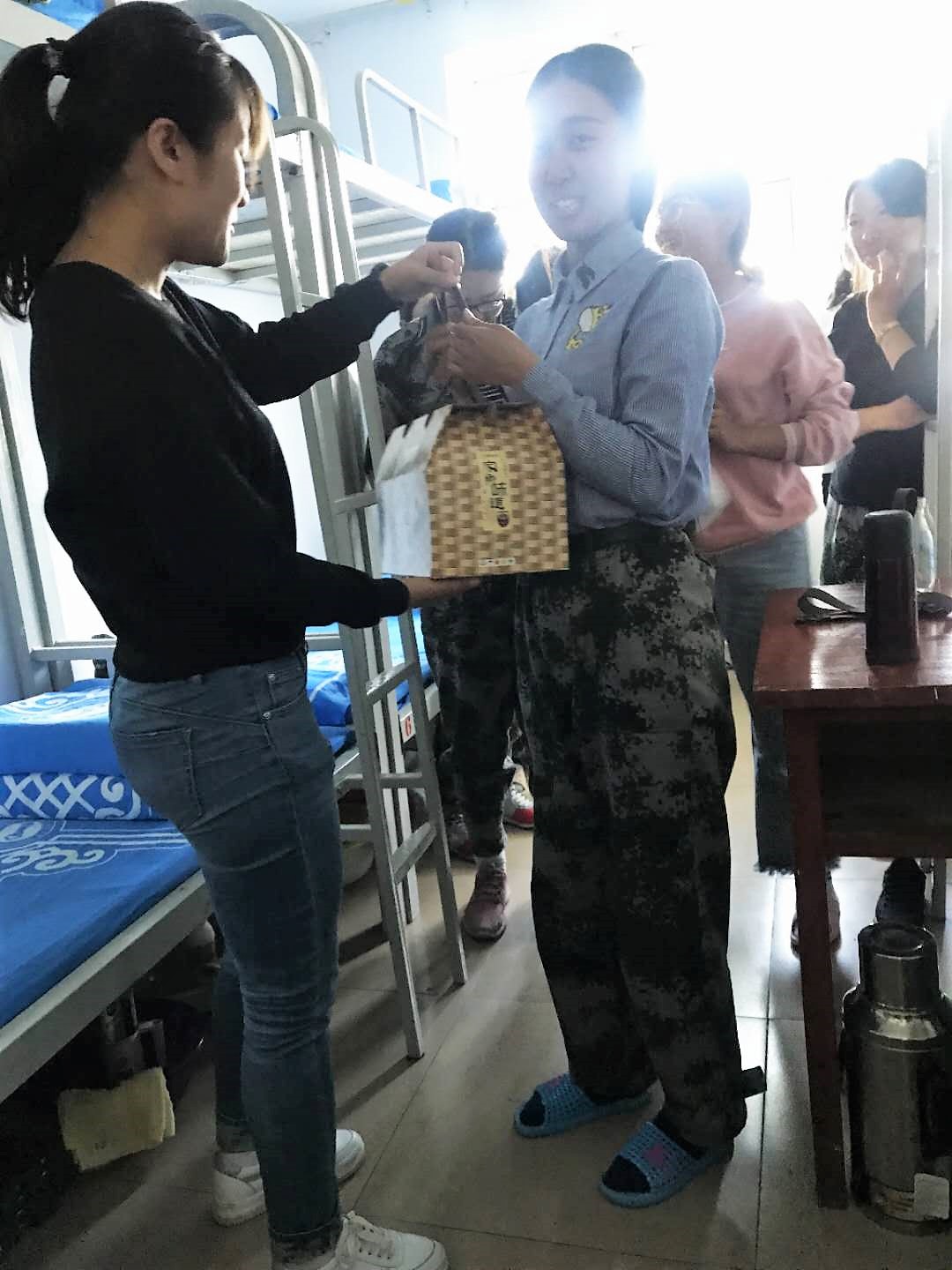 明月寄相思,值此佳节来临之际,经请示学院党总支恩和巴雅尔书记,体育买球官网非师范类学生党支部书记刘素军老师于2018年9月24日下午一点整带领支部党员,带着有着浓郁节日氛围的礼物—丰镇月饼,走进2018级部分新生宿舍看望了2018级生态班同学。