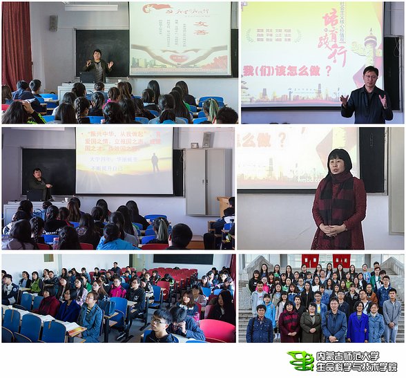 作为党支部党建项目“融教书育人于党建工作的创新支部活动模式之探索(2)”内容之一,3月30日下午,教工第二党支部党员教师与生物科学专业2016级汉班的同学们在田楼425教室开展了“核心价值观”为主题的党课教育活动,支部党员、班主任李景环以“培育和践行社会主义核心价值观——我们该怎么做”为题作了专题讲座,讲座内容分三部分:社会主义核心价值观的内容、提出的背景和当代大学生如何培育和践行社会主义核心价值观。李老师结合大学生的实际和当今社会的现实案例对社会主义核心价值观的培育和实践进行了思考,对如何解决学生遇到的思想问题和如何实现理想的途径也提出了很好的建议。支部党员、党总支书记恩和巴雅尔进行了点评,他勉励同学们保持政治和意识形态敏感性,认清国情和国际形势,学会思考和看问题,传递正能量,以实际行动学习和实践社会主义核心价值观。此次活动由党支部书记卢萍主持并做了总结。