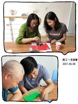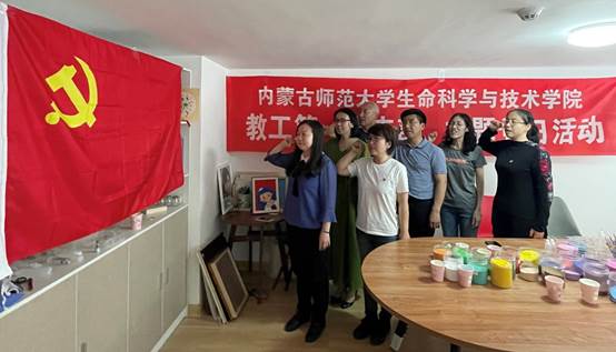 体育买球官网教工第一党支部于2021年6月8日开展主题党日活动——不忘初心,手绘党旗,重温入党誓词。活动首先由教工第一党支部书记苏日古嘎同志带领大家重温入党誓词并组织学习党旗、党徽的由来和含义。