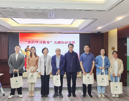苏小波代表学院党委作了现场点评,他指出本次活动准备充分、主题鲜明,各参赛队伍表现优异,竞赛现场严肃紧张、团结活泼,体现了学院师生党员学习习近平新时代中国特色社会主义思想和新修订的《中国共产党纪律处分条例》的积极性和主动性,希望全院党员要把《中国共产党纪律处分条例》的学习继续融入日常生活工作中,进一步促进作风转变。结合当下正在推进的生物科学师范专业认证评建工作,他强调要切实将党纪学习教育和日常业务工作紧密相融,全院师生要继续巩固学习认证理念,增强认证工作的重视,积极做好专业认证的迎评工作。活动最后,苏小波书记和红雨院长共同为获奖队伍颁发了学校文创纪念品。