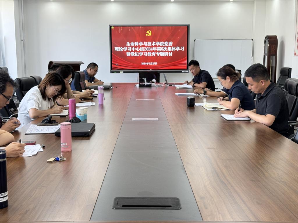 6月27日下午,体育买球官方网站党委在生物楼三楼会议室召开党委理论学习中心组2024年第6次集体学习暨党纪学习教育专题研讨。学院党委理论学习中心组成员参加会议。学习会由学院党委书记苏小波主持。