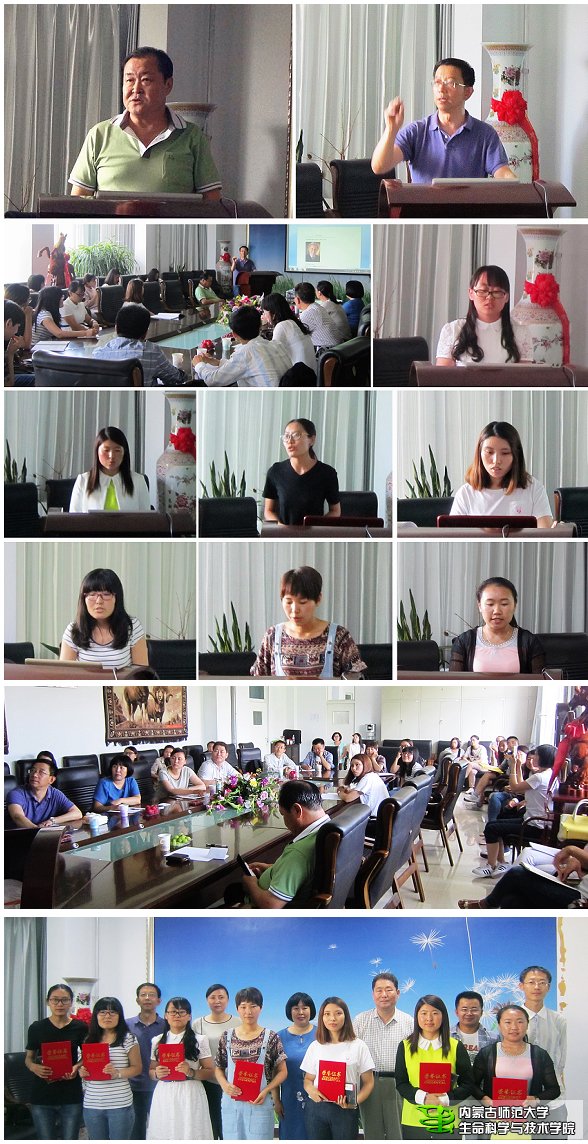 第二轮的学术交流报告会于6月21日下午学院会议室举行。体育买球官网院长哈斯巴根教授、卢萍教授、王铁娟教授、斯琴巴特尔教授、晓敏博士和袁博博士出席,哈斯巴根院长发表了热情洋溢的讲话,侯占铭教授做了《基因功能研究》为题目的特邀报告,然后由张小秋、白芙荣、杨苗苗、席领军、彭海丽、韩月英、韩吐雅等七位研究生分别做了题为《蒙古扁桃油脂成分及品质分析》《山韭蒜氨酸霉同源基因保守区的克隆及序列分析》《种子老化对裸燕麦种质资源遗传完整性的研究》《小花棘豆Embellisia内生真菌酵母氨酸还原酶基因确实缺失的回复突变株构建》《基因敲除盒的构建及转化子的筛选》《牧民对牧区生态环境的感知——以赤峰中西部地区为例》《蒙古高原姬缘椿科昆虫的种类组成和区系分析》的精彩报告,通过听讲报告和老师们的现场点评,大家开阔了视野,拓展了了思路,为以后开展学术研究得到了很好的启发,最后评委老师为7位同学颁奖,王铁娟教授作了总结,此次活动得到学院大力支持,并在研究生会负责同学们的精心组织下圆满成功,也丰富了体育买球官网研究生的学习生活,提高了学术交流能力。