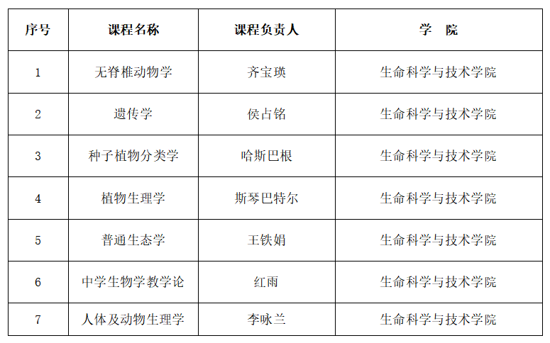 自治区级精品课程一览表