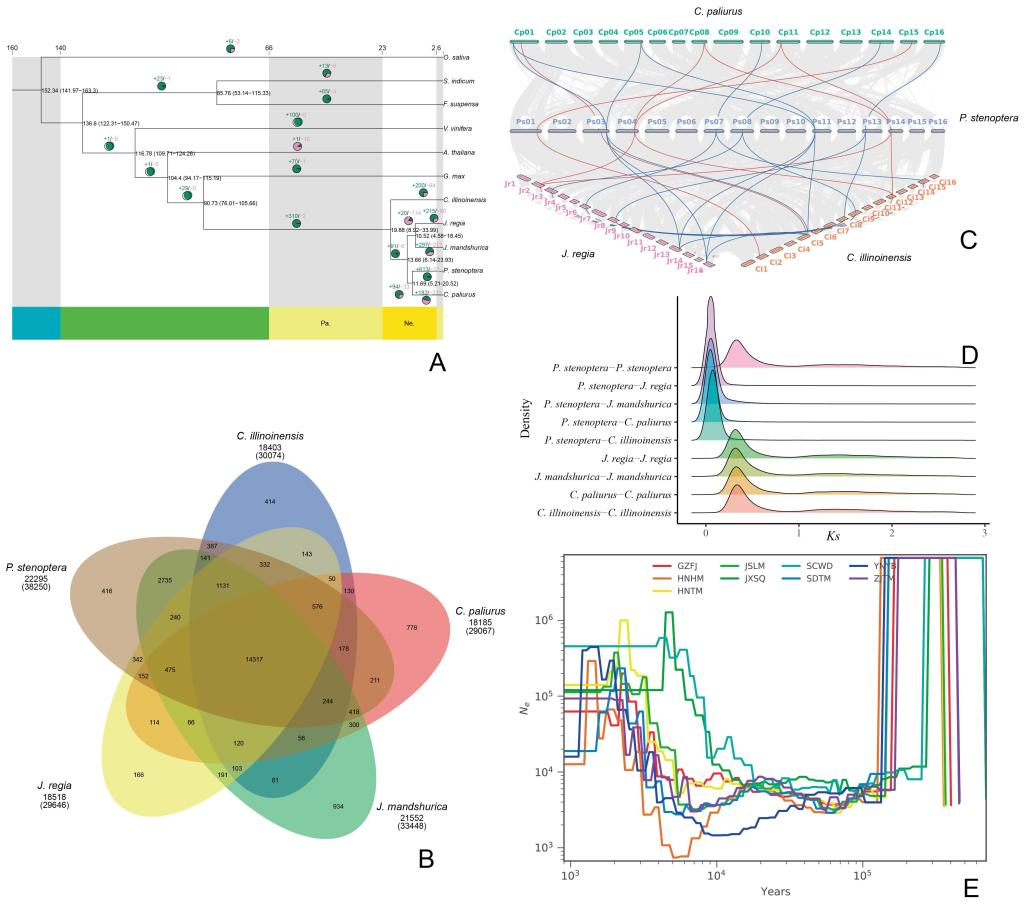 近期,内蒙古自治区高等学校蒙古高原生物多样性保护与可持续利用重点实验室成员、我校体育买球官方网站李永教授团队在进化生物学领域期刊“Plant Diversity”上发表最新研究成果“Multi-omics analyses provide insights into the evolutionary history and the synthesis of medicinal components of the Chinese wingnut”。