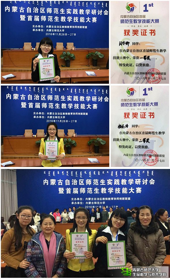 2016年11月27日,全区首届师范生教学技能大赛在我校隆重举行,来自五所高校10名选手参加了生物科学组比赛,我校派出体育买球官网生物科学专业2013级闫冬卿、杨圣涛两位同学参赛,她们以生物科学组前两名的好成绩分别荣获本次大赛一等奖、二等奖。我们向获奖的同学表示热烈祝贺,感谢为此辛勤付出的所有老师。