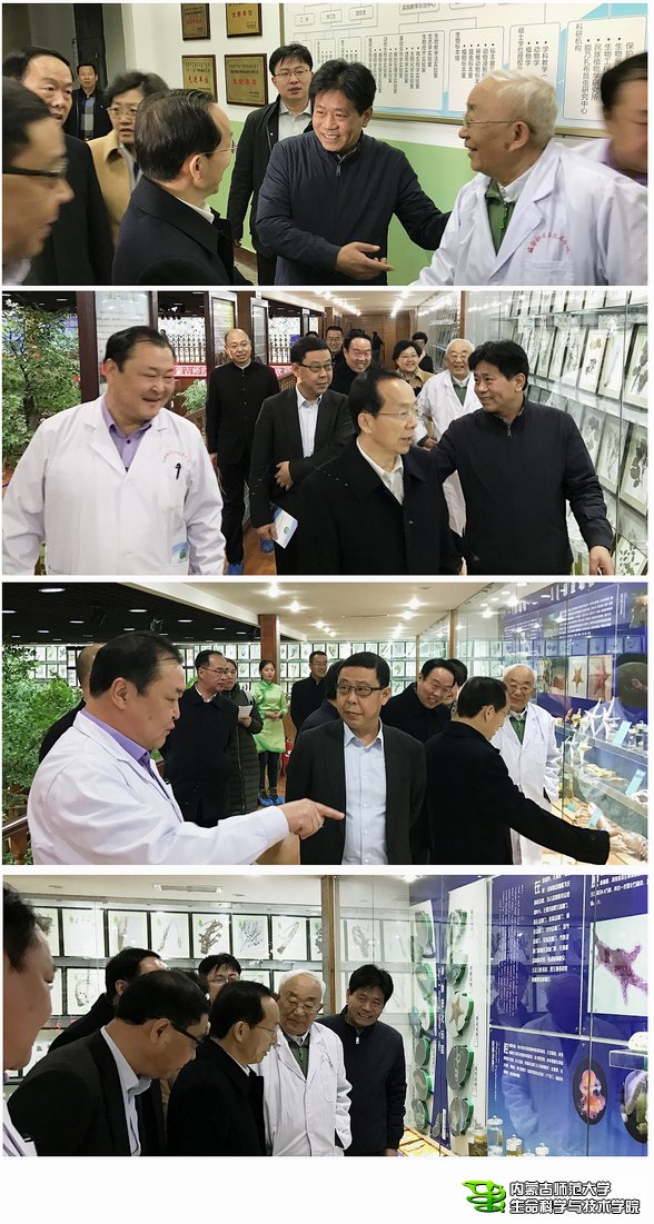 3月14日上午,来我校视察调研的自治区党委常委、组织部长曾一春同志在自治区高校工委书记、教育厅厅长侯元,自治区组织部副部长闫同义,我校党委副书记、校长云国宏,自治区教育厅副厅长杨劼等领导的陪同下走访我校生物标本馆,云校长向曾部长汇报了我校概况,并介绍了自治区科学研究特殊贡献奖获得者能乃扎布教授以及他在昆虫学研究领域的辉煌业绩,体育买球官网哈斯巴根院长向曾一春部长一行介绍了我校生物标本馆建设概况和展示的标本,曾一春部长边走边询问我区动植物种类、数量和分布概况,哈斯巴根院长和能乃扎布教授一一作答,曾部长对我校生物标本馆建设给予了充分的肯定,他握着能乃扎布教授的手说:希望你们在科学研究的道路上越走越好,取得更好的业绩。