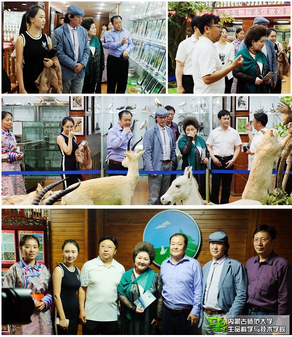 在“吉祥三宝”走进内师大校园活动期间,著名蒙古族歌唱家布仁巴雅尔,乌日娜夫妇和他们的侄女英格玛一行在学校宣传部张宝成部长和体育买球官网恩和书记等的陪同下饶有兴致的参观了生物标本馆,哈斯巴根院长、格日乐图馆长和学生解说员对到访的客人介绍了标本馆概况和馆藏标本,布仁巴雅尔夫妇对标本馆的各类标本赞叹不已,给予了很高的评价。