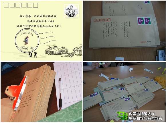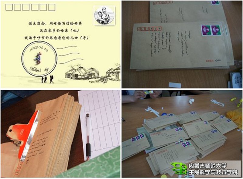母亲节,是一个感谢母亲的节日,是每年5月的第二个星期日。在2012年5月13日,体育买球官网为方便广大同学用书信的方式表达对母亲的思念,特在校北门举办了《滋生想念·用母语写信给母亲》为主题的庆祝母亲节活动。在现场同学们用手中的纸和笔抒发着对母亲的思念,经过一天的活动收集到了大量的信件并且将它们送到了邮局。本次活动还有其他学校的大学生和社会青年志愿者们共同参与,内蒙古电视台蒙语卫视频道的新闻栏目也对本次活动进行了报道。