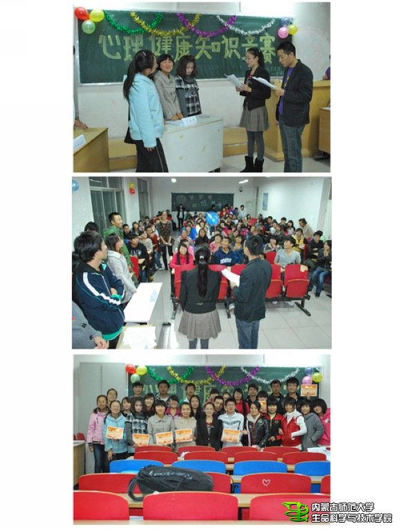 10月27日晚,体育买球官网心理辅导站在田楼210教室举办大学生心理健康知识竞赛,有200余名同学参与到比赛中来,竞赛分为三个组,分别为2009级组、2010级组、2011级组,每组决出一个获胜班级进入决赛环节,决赛中各班级积极抢答,现场气氛活跃,笑声不断,促进了各个年级同学之间的交流,加深了同学之间的友情,让同学们在其乐融融中对心理健康知识有了更深刻的了解。最终结果如下: