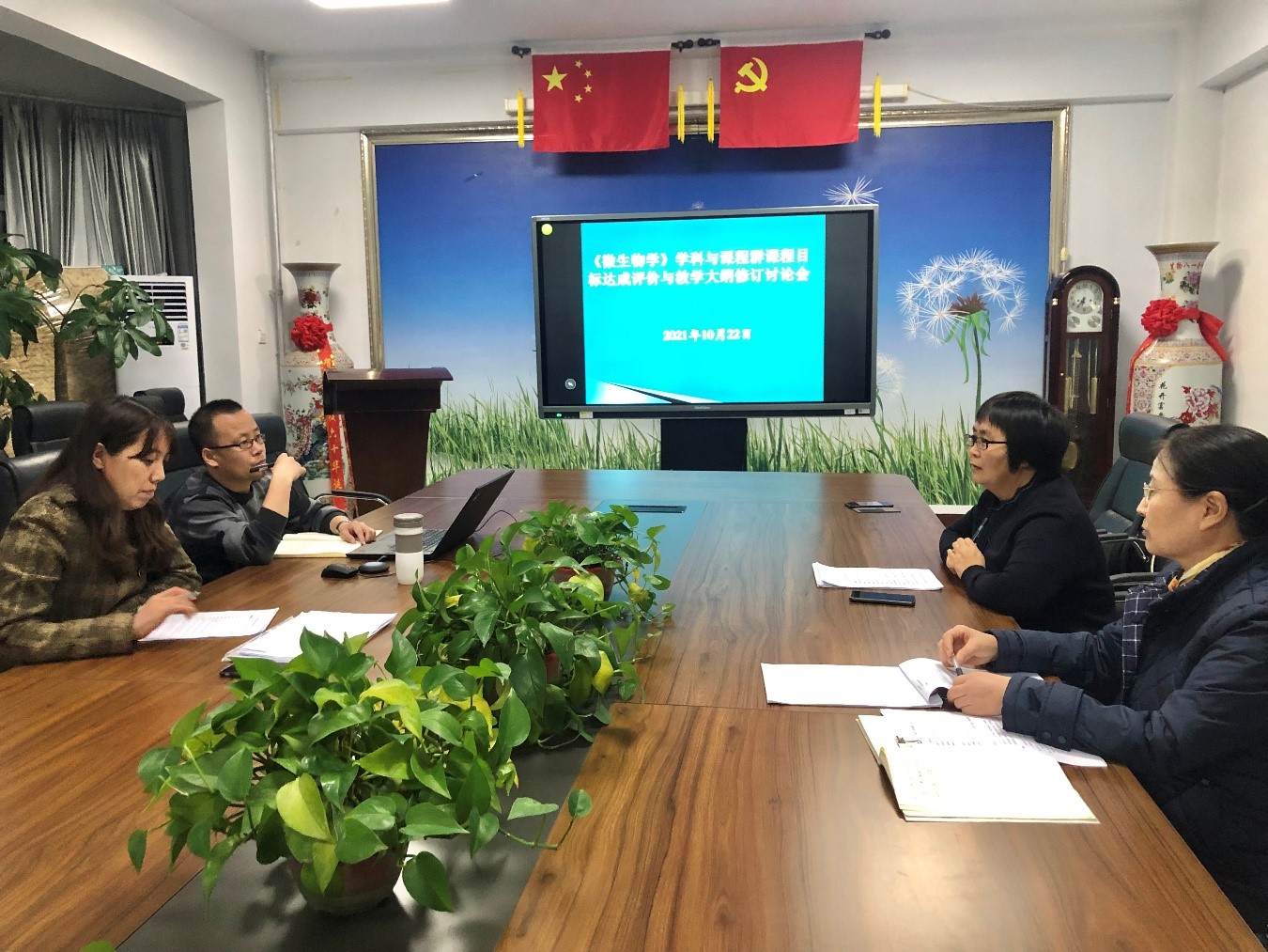 2021年10月7日与10月20日下午,体育买球官方网站举行生物科学师范专业认证课程目标达成度评价讨论会议。体育买球官网领导班子及全体生物科学专业任课教师参加本次会议,会议由学院副院长王铁娟主持。