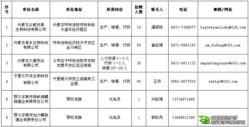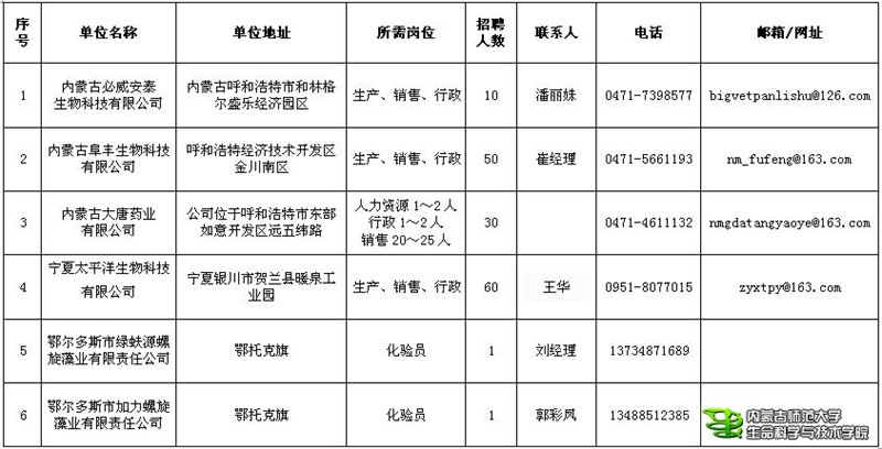 2012年生物专业招聘信息