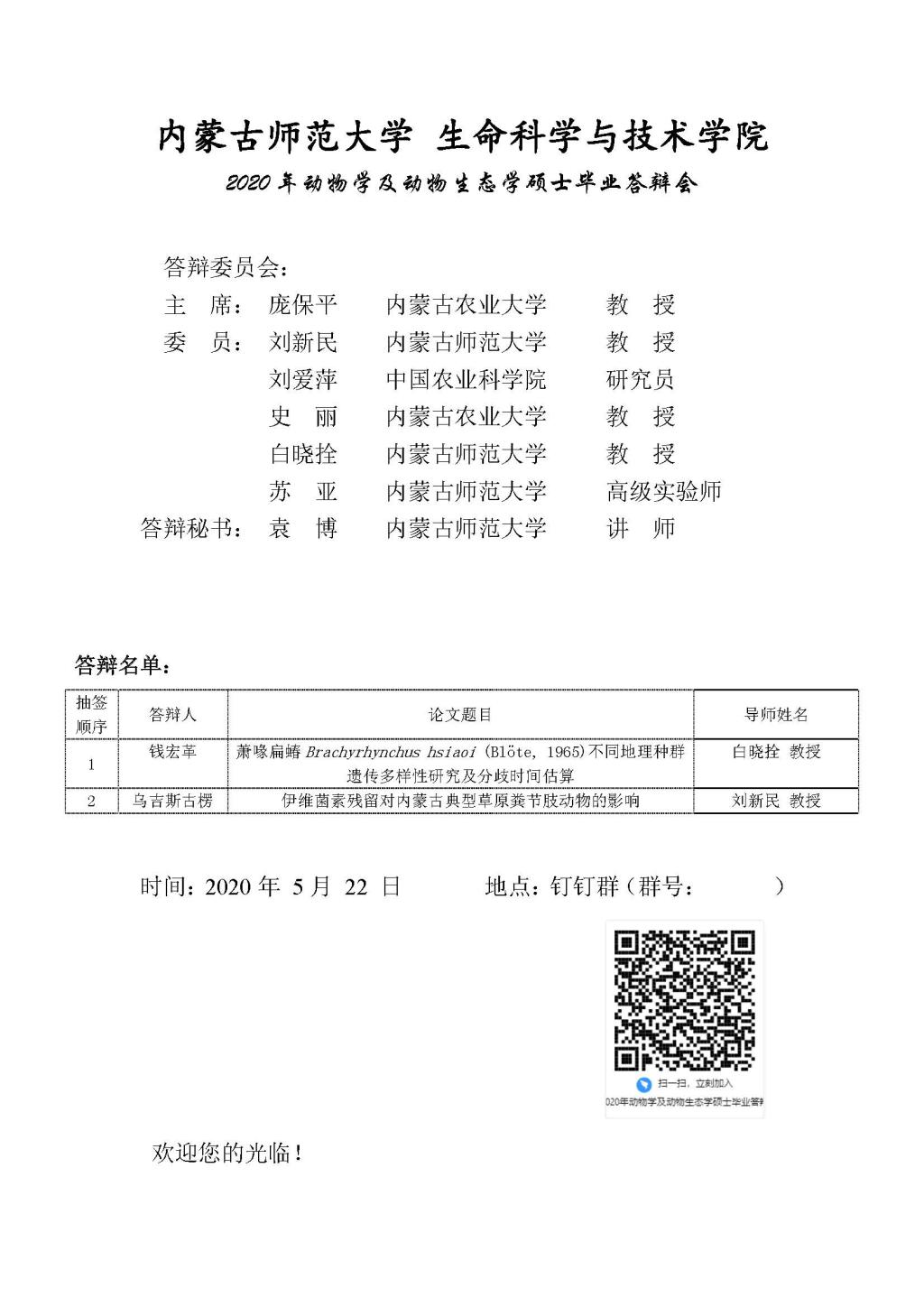 体育买球官方网站2020年动物学及动物生态学硕士毕业答辩会