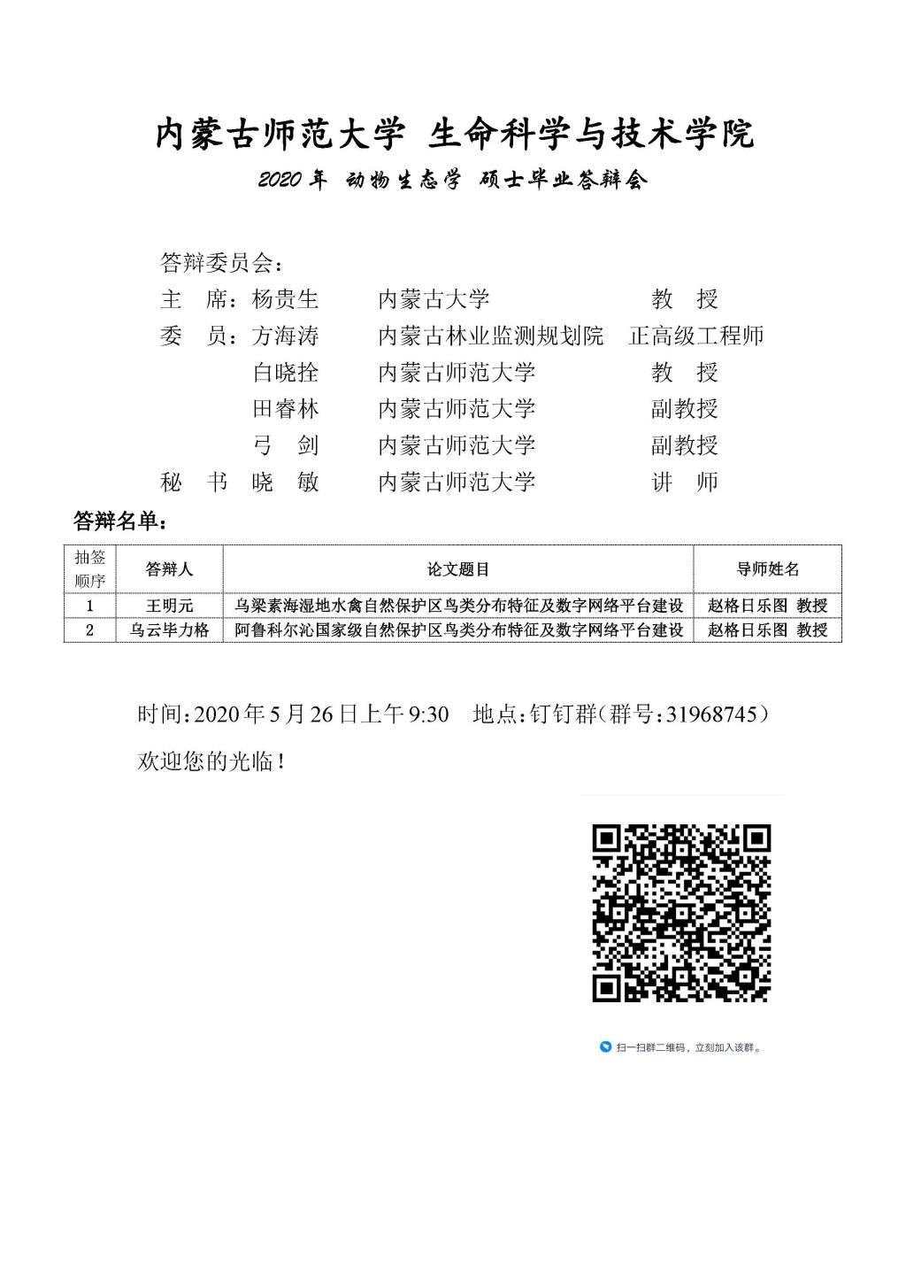 体育买球官方网站2020年动物生态学硕士毕业答辩会