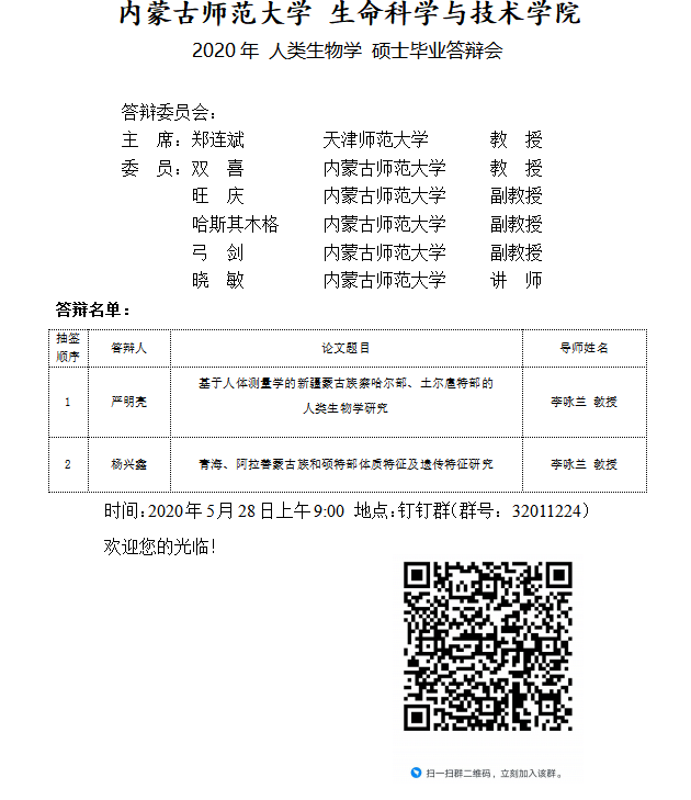 体育买球官方网站2020年人类生物学硕士毕业答辩会