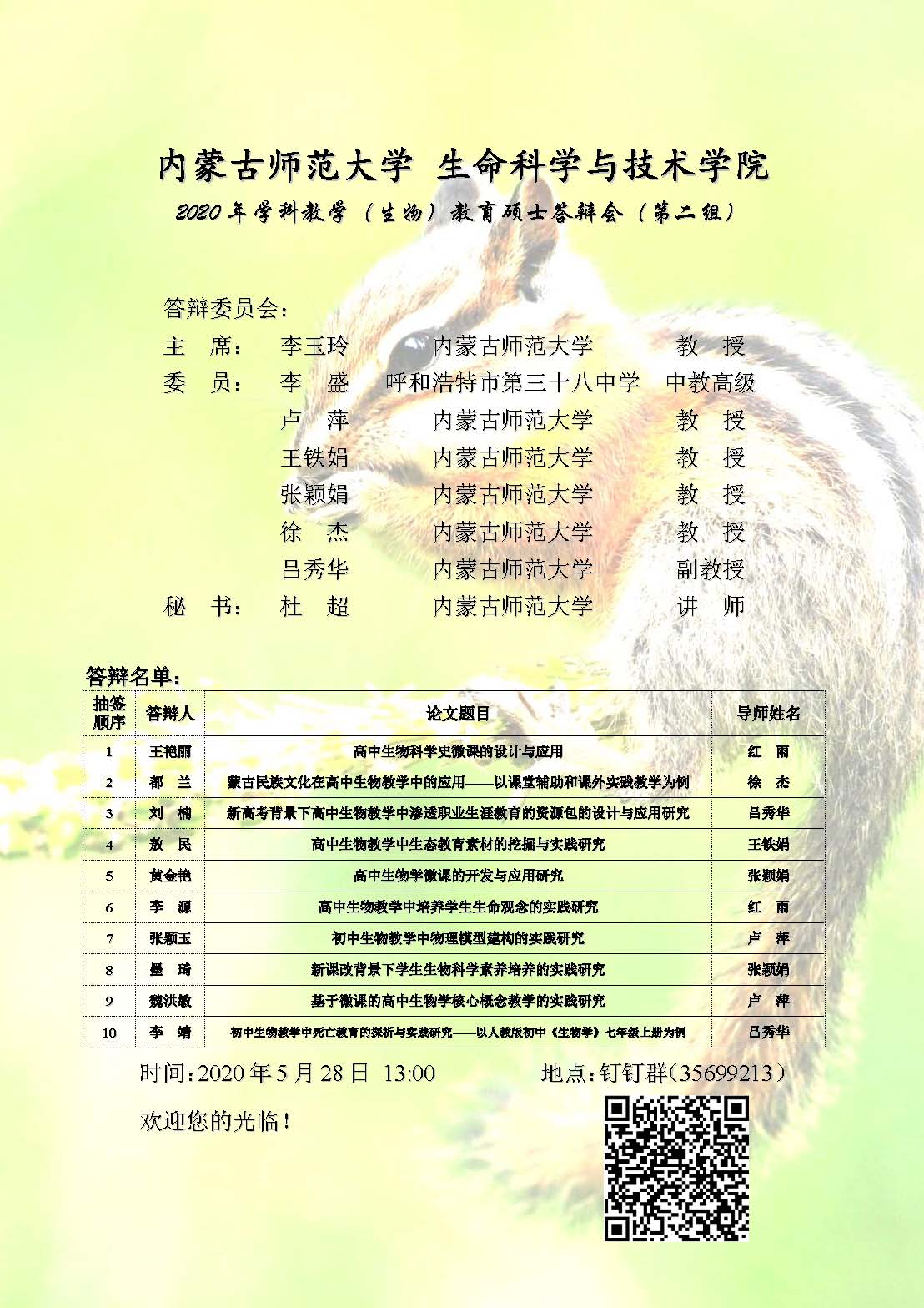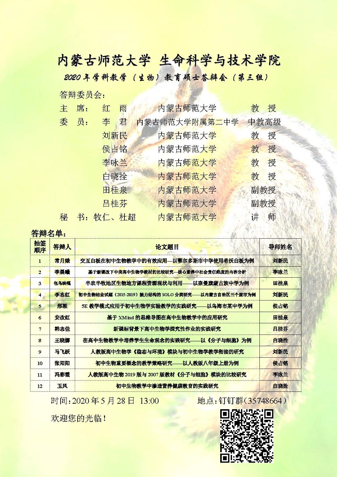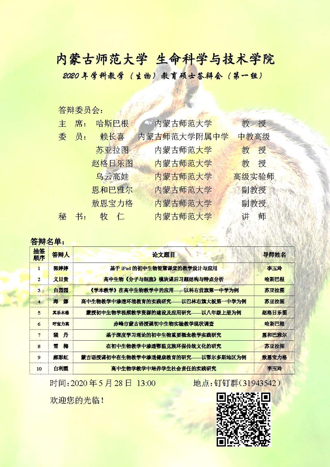 体育买球官方网站2020年学科教学(生物)教育硕士答辩会