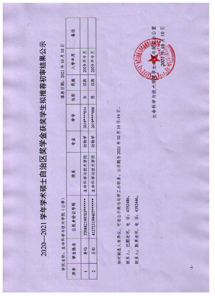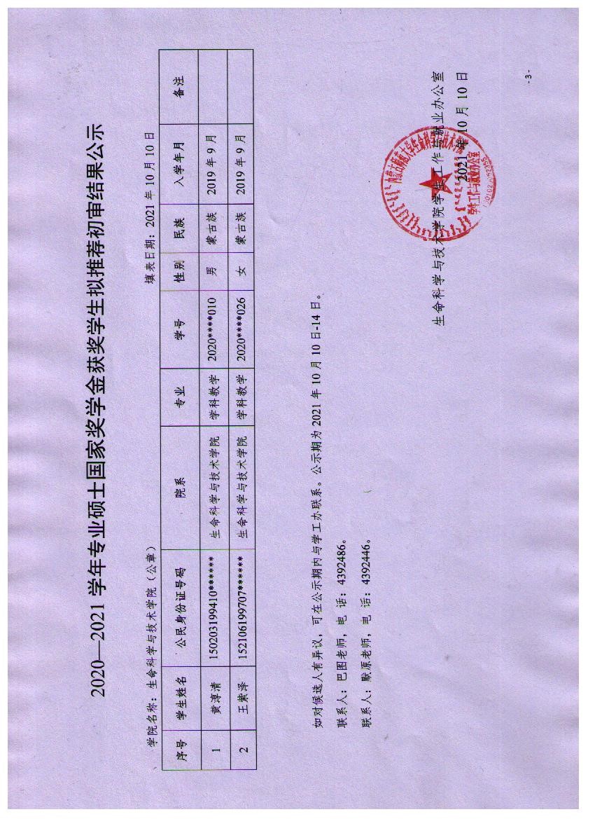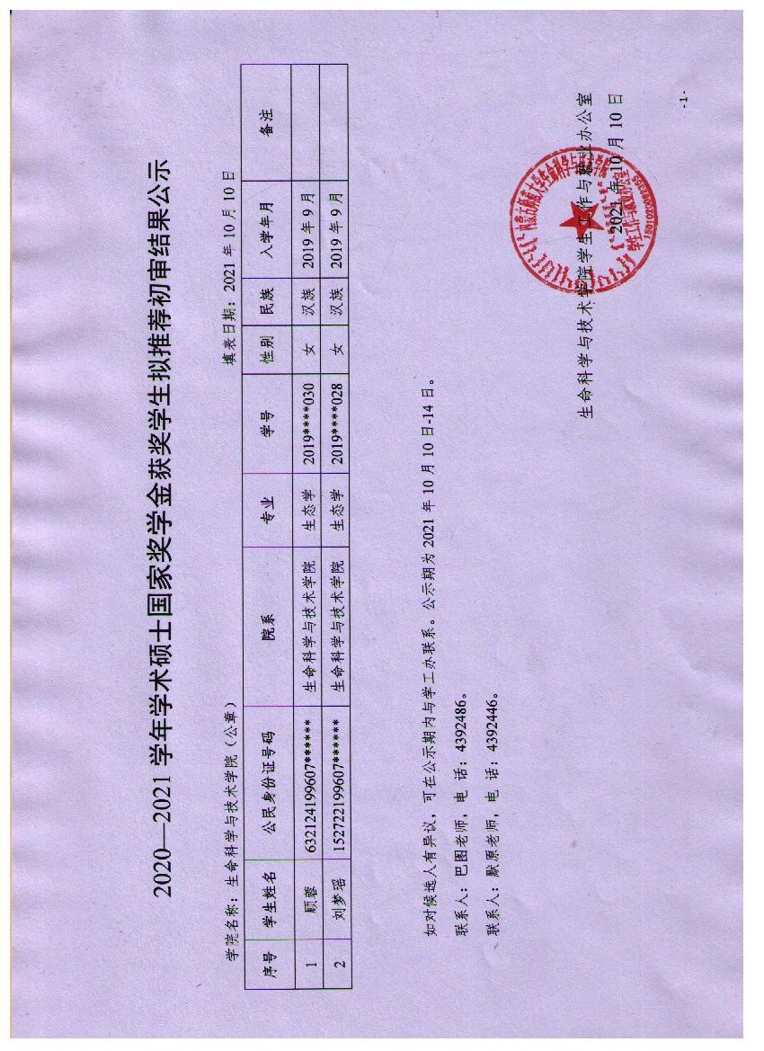 2020-2021学年体育买球官方网站硕士各类奖学金获奖学生拟推荐结果公示