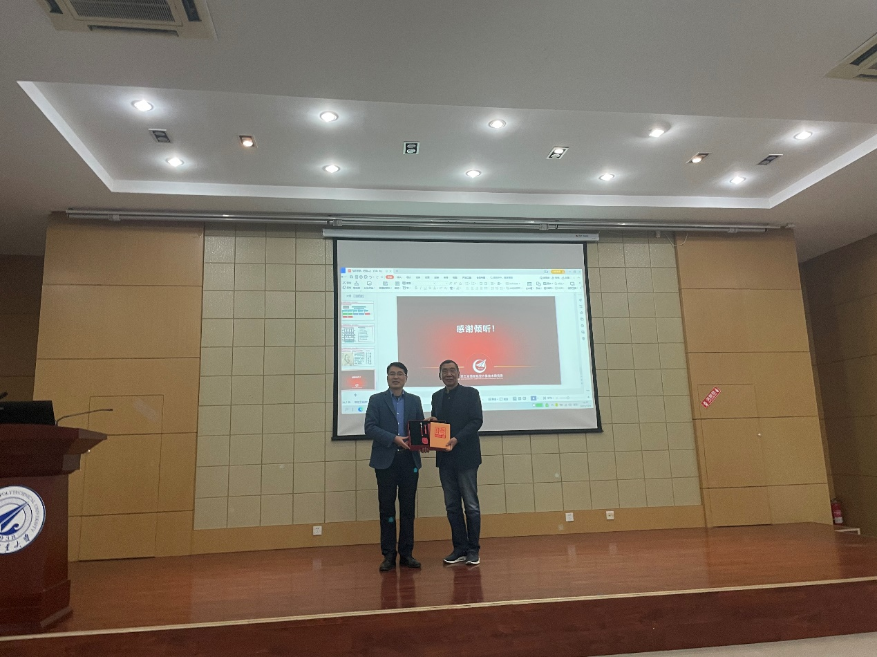 在报告会结束之际,米兰milan官方网站党委书记李春科代表学校向叶宏总师颁发了校外班指导教师聘书以及纪念品。
