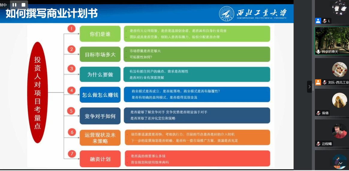 李春科结合我国国情,从创新创业政策、生态、载体和我校探索等多个重要方面做了深入分析和解读。其后,他又以中国国际大学生“互联网+”大赛作为抓手,对高校创新创业实践教育展开深入解读,并结合我校历届获金奖案例剖析,激励广大同学高度重视、踊跃参加,不断培养和提升自身的创新创业能力和素养。最后,李春科重点围绕一份优秀的商业计划书到底怎么样来撰写,为同学们进行了详细讲解,鼓励同学们积极参与,敢于创新,勇于实践,不怕失败,挑战自我,早日成为拔尖创新人才。
