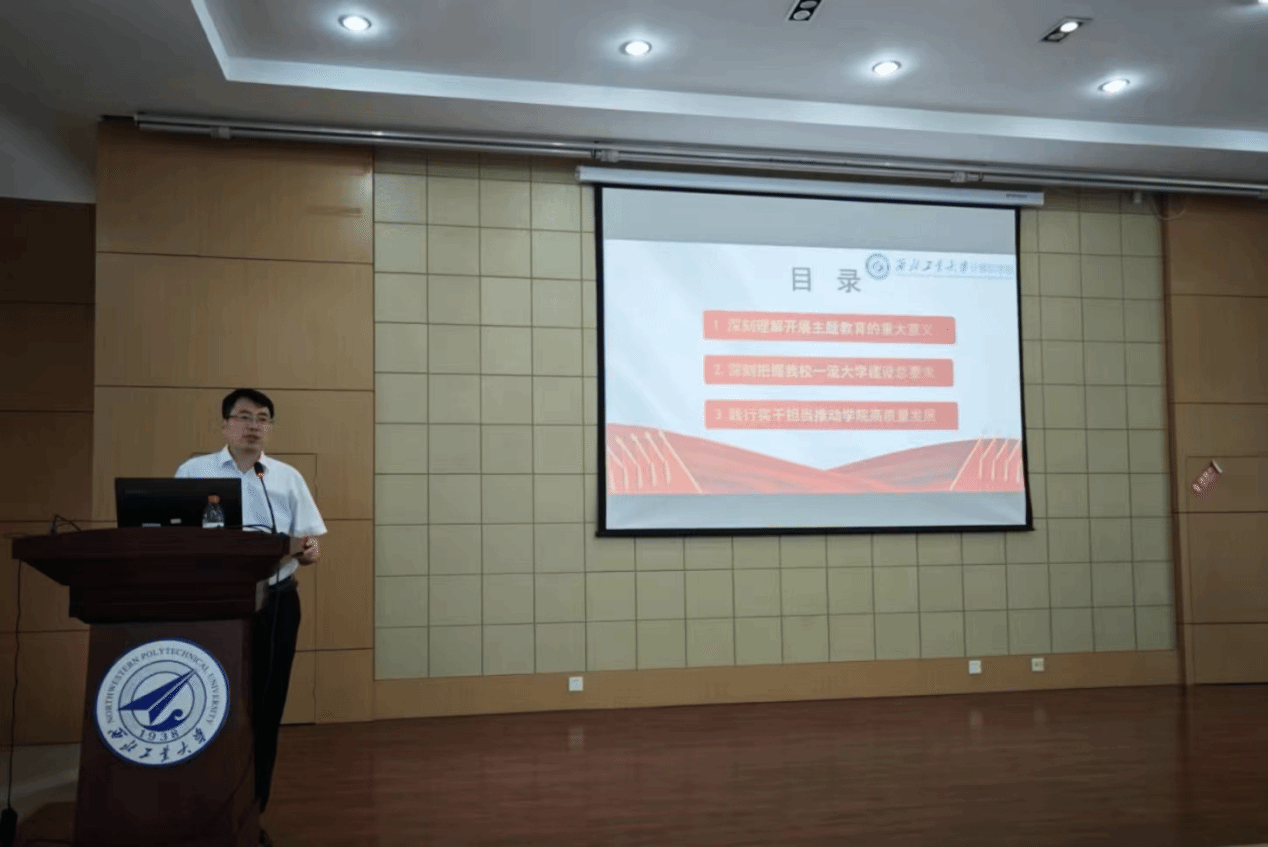 李春科从深刻理解开展主题教育的重大意义、深刻把握我校一流大学建设总要求、践行实干担当推动学院高质量发展三个方面展开论述。一是通过深入阐述开展主题教育的时代背景、重大意义和总要求,习近平新时代中国特色社会主义思想的科学体系、丰富内涵和精髓要义,学院在推动学院主题教育走深走实方面的具体行动等,带领师生在学思践悟中站稳政治立场、坚定政治方向,鼓励师生争做“四有”好老师和有理想、有本领、有担当的新时代青年。二是围绕习近平总书记“要把高等教育作为建设教育强国的龙头”的要求,传达最近学校党委书记李言荣主题教育专题党课精神,深刻把握学校“双一流”建设和高质量内涵式发展的总要求。三是立足于学院实际,通过对标国内外一流高校,分析学院在发展中存在的问题与差距,坚持问题导向、目标导向,梳理下一步的发展思路和重要举措,以建设一流学院、一流学科为目标,奋力谱写米兰milan官方网站建设新篇章。