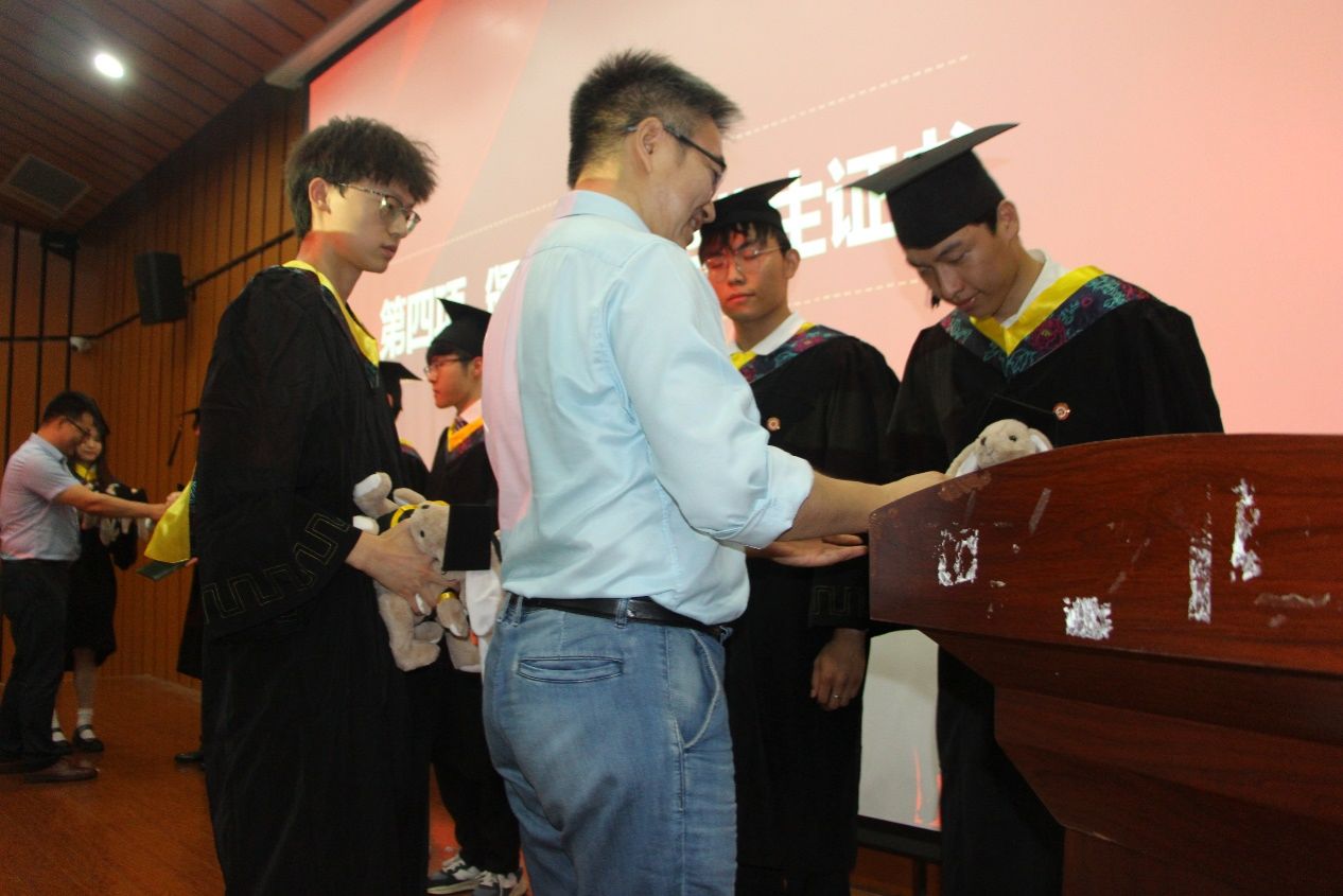 教师代表也向学生赠送礼物,表达了学院教师对即将远行的学子的祝福。
