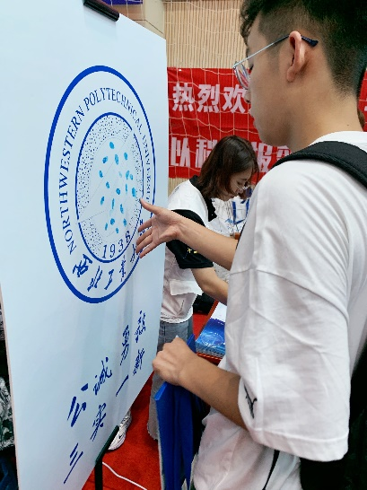 新生们接踵而来,拿上小道具,站上合照墙,定格一下青春活力时刻,也踏上了即将开启的新的青春之旅。
