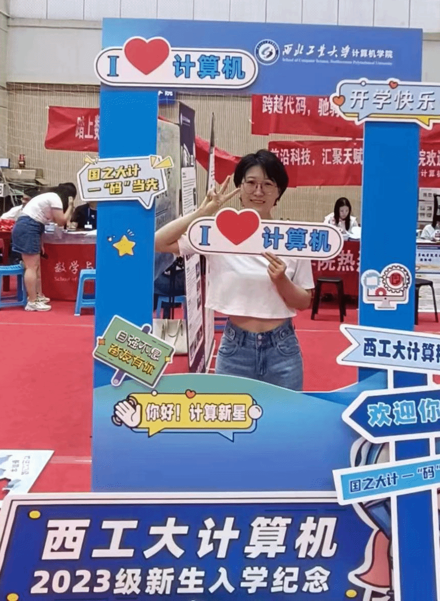 为了做好这次迎新,学院提前谋划部署了迎新准备工作。学院团委老师靳宇琪、学生干部及志愿者提前对场馆内外的学院点位进行了精心布置,围绕“计算报国,一码当先”的迎新主题,在迎新区域张贴了妙趣横生的迎新横幅,布置了精美的主题展板,营造出一派温馨热烈的迎新氛围。在场馆内外还布置了展示学院特色的趣味合影框,并提供手持标语卡供新生们打卡拍照留念,同时在场内报到点位摆放校徽图案的指印印章图,供每位新生在完成报到手续后按压手印……一系列精心的布置与活动为前来报到的新生及家长们带来了充满仪式感的报到体验及强烈的归属感。