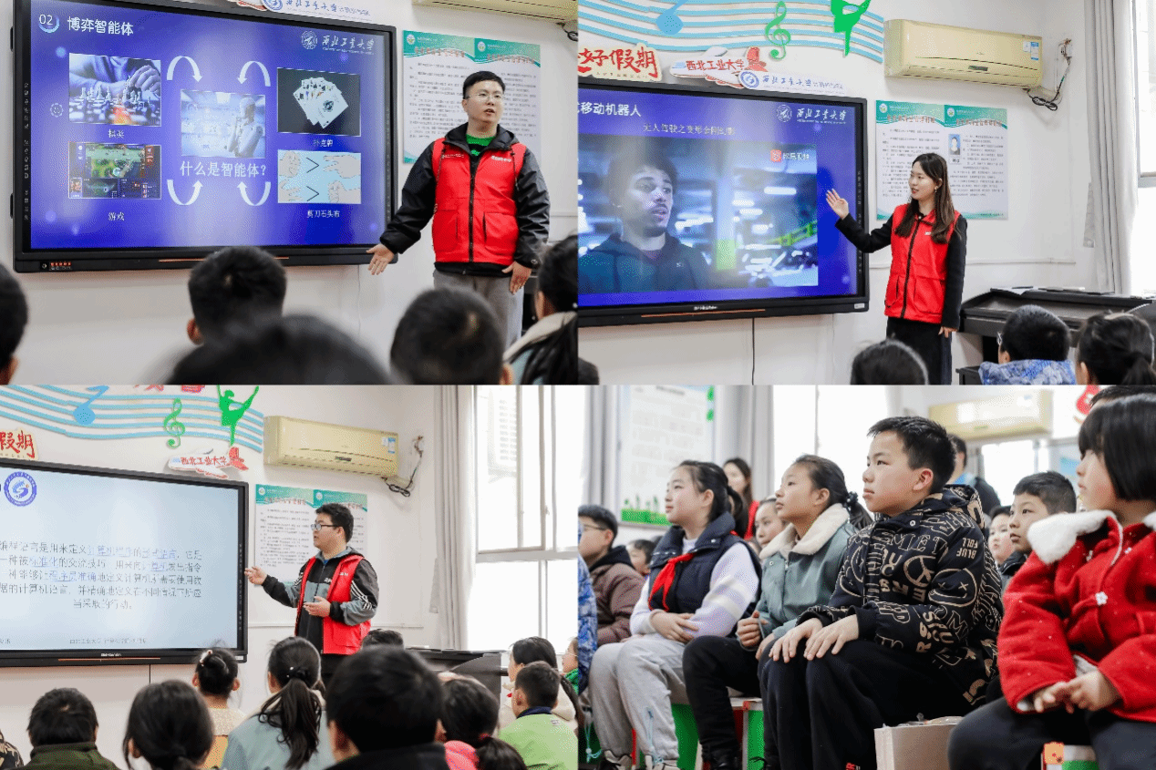 米兰milan官方网站学生“拾梦开源”志愿服务队和10012102团支部、研十一党支部的志愿者们精心为孩子们准备了一堂AI编程互动及智能体探秘科普课程。志愿者们用通俗易懂的语言和丰富的视频动画科普计算机AI领域相关知识,一行行代码仿佛充满了魔力,使学生感受到了编程的无限魅力,各类智能体的科技本领也让孩子们大开眼界,短短40分钟的课程不仅为孩子们传授了丰富的知识,也在他们心中播下了对计算机AI科技的向往之种。
