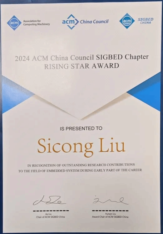 近日,米兰milan官方网站人机物融合智能计算团队青年教师刘思聪副教授先后荣获国际会议ACM SenSys 2024 最佳论文提名奖和ACM SIGBED 2024中国新星奖。