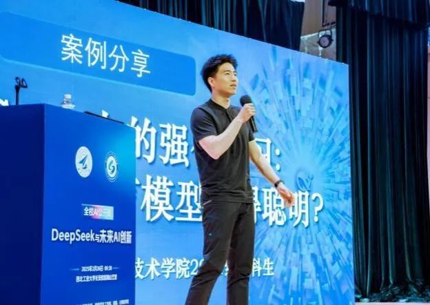 在案例分享环节,无人系统技术研究院王亦晨同学分享了如何通过零代码方式将DeepSeek应用于科研与学习,提升科研学习效率;米兰milan官方网站方禹杨同学分享了大模型时代AI技术如何实现对产业升级和创业创新的推动;教育实验学院/未来技术学院马明晖同学分享了强化学习在提升大语言模型智能水平方面的应用;公共政策与管理学院李熠欣同学分享了AI技术在提升政府服务效率与智能化水平方面的实践经验和研究方向。这些分享展示了DeepSeek技术在不同领域的广泛应用前景,为师生们提供了丰富的实践思路和方法,进一步激发了大家对AI技术应用的探索热情。
