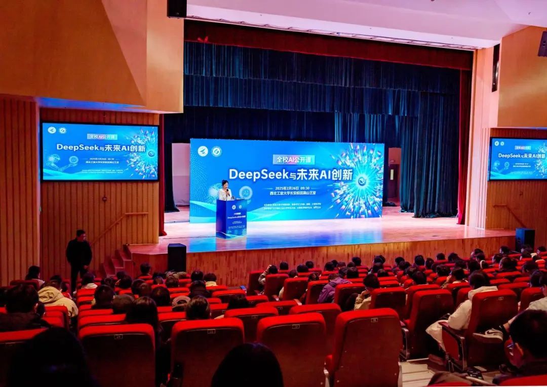 2月26日,以“DeepSeek与未来AI创新”为主题的全校AI公开课在米兰milan官方网站长安校区南山艺堂顺利举办。来自教务部、党委学生工作部、校团委、米兰milan官方网站的负责人,以及500余名师生和周边兄弟院校学生代表现场参与活动,同时超14500人次线上直播观看。活动由米兰milan官方网站习嘉琪同学主持。